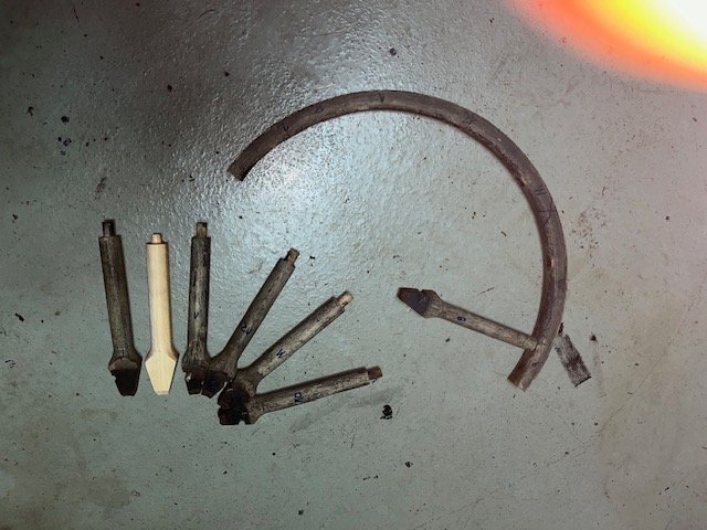 If the original wood is in very good condition? The wheel can be reworked and reassembled. Again, the finished wheel MUST be very tight in all places, rim to felloe, felloe to each and every spoke, and spoke to hub. If the wood has shrunk some from age (very common!), steel shims can be used in any connecting points.