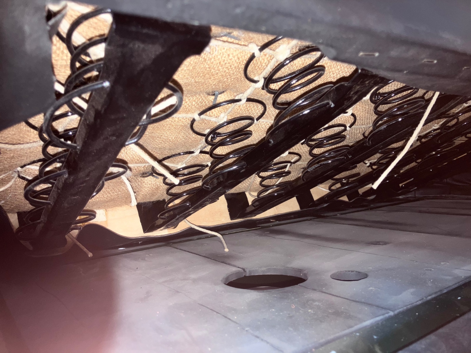 Did straighten the spring coil stacks that were leaning, and then reinforced the original seat cushion spring back to shape, with cross laces on the upper sets of coils, that was a chore using music wire, that wire is very stiff and very hard to twist and tie