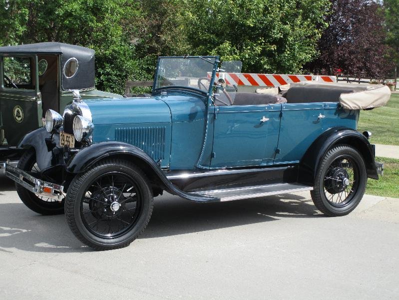 Note how a 1928 Phaeton bears a strong resemblance to a 1927 "Sport Touring" with its wire wheels, bumper bars, windwings, tuna can taillight and tan top boot, as well as an optional blue color. Coincidence you say???