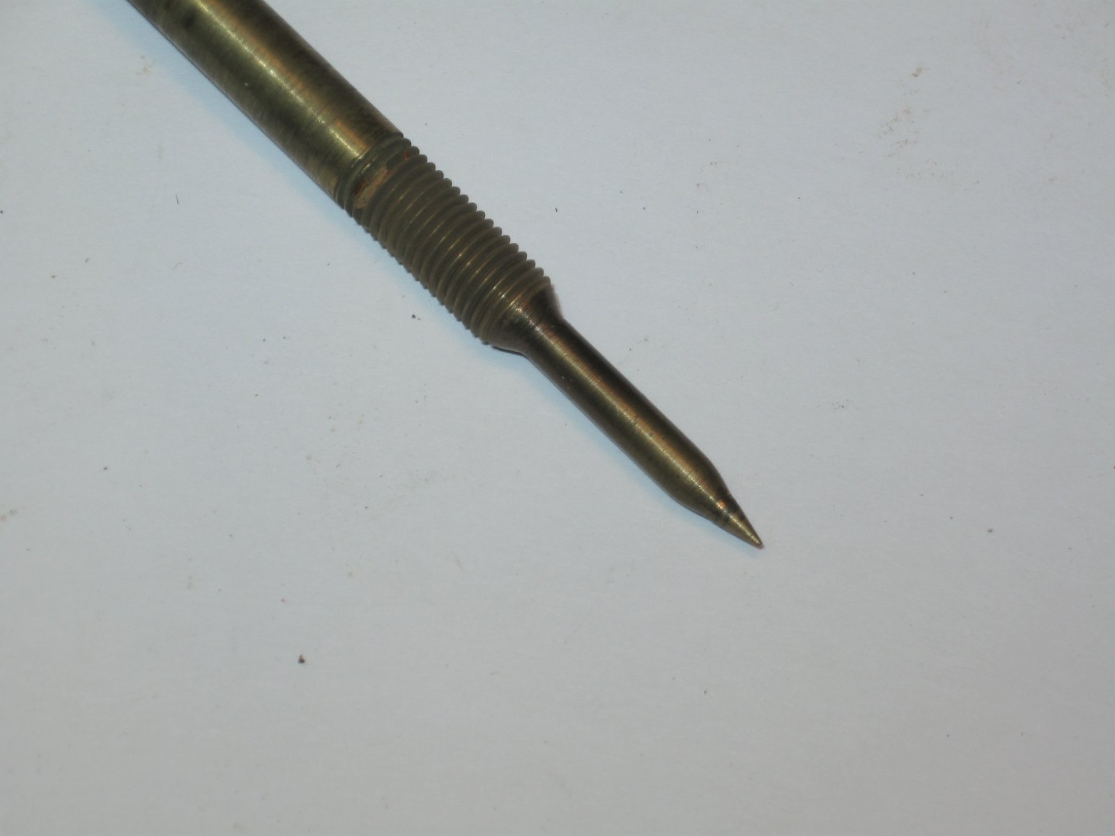 Here is a new adjuster needle and I would like someone with an AUTHENTIC Wizard carb that isn't on their car to please compare the visual of my needle to theirs...I am not sure if the threads need to go all the way to the end of the brass or not. I have a Wizard carcass, minus the needle and my part seems to fit just fine but I'd like to be sure, so if you have one on the shelf please consider taking a moment and comparing my picture to your actual part.