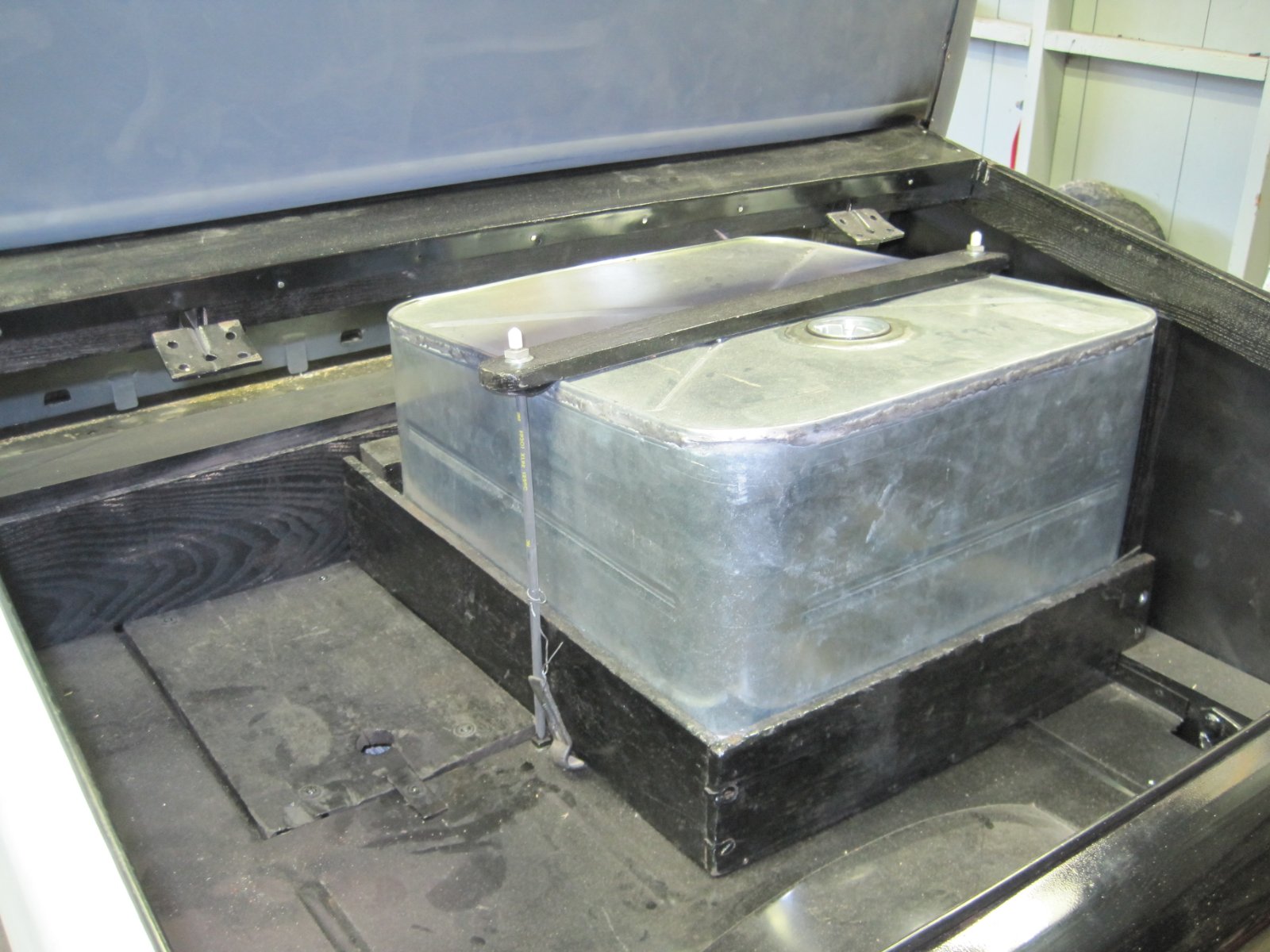 NOTE: this is a photo of a '22 Coupe fuel tank in the turtle deck and is posted just to give you an idea of where the square tanks were placed.