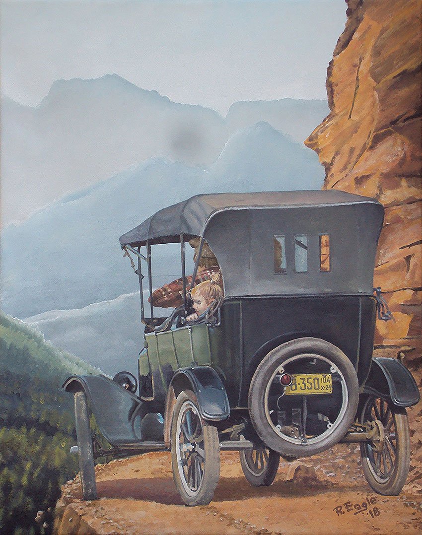 Thank You Rich......I have kept a folder with all the paintings you have posted in the past. My favorite is the one you used on this thread to start. It has inspired us to revisit the west again this summer. One detail I liked was the camera used by the couple in the coupe. I have one similar and with the help of Mr. Osterman I was able to identify the years mine was made.