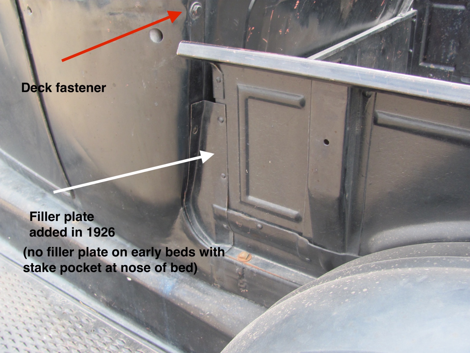 I have several 26/27 turtle deck side panels that do not have the holes along the edge to put bolts at the back of the seat panel. perhaps Ford figured out at some point they needed to secure the turtle deck better. I have a March of 27, that is an original Roadster pickup embossed back panel with no holes for bolts.
