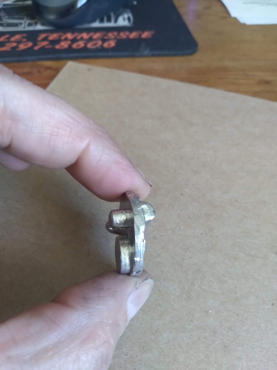 The originals were made out of a white metal, probably zinc. If you used lead to make the flapper it will probably not hold up and more than likely won’t run correctly. If the weight is off, the mixture setting for the idle will not match the required mixture setting of a higher RPM.
