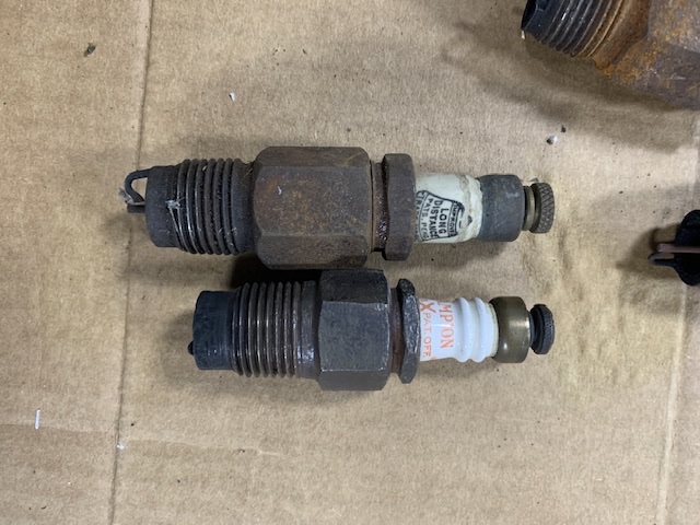 Here are pictures of some spark plugs that I would like to find one of. Was wondering if anyone would know what make they are. They were in a car or an engine that I bought, but one was broken. They have a bell on one side. Thanks Dan.