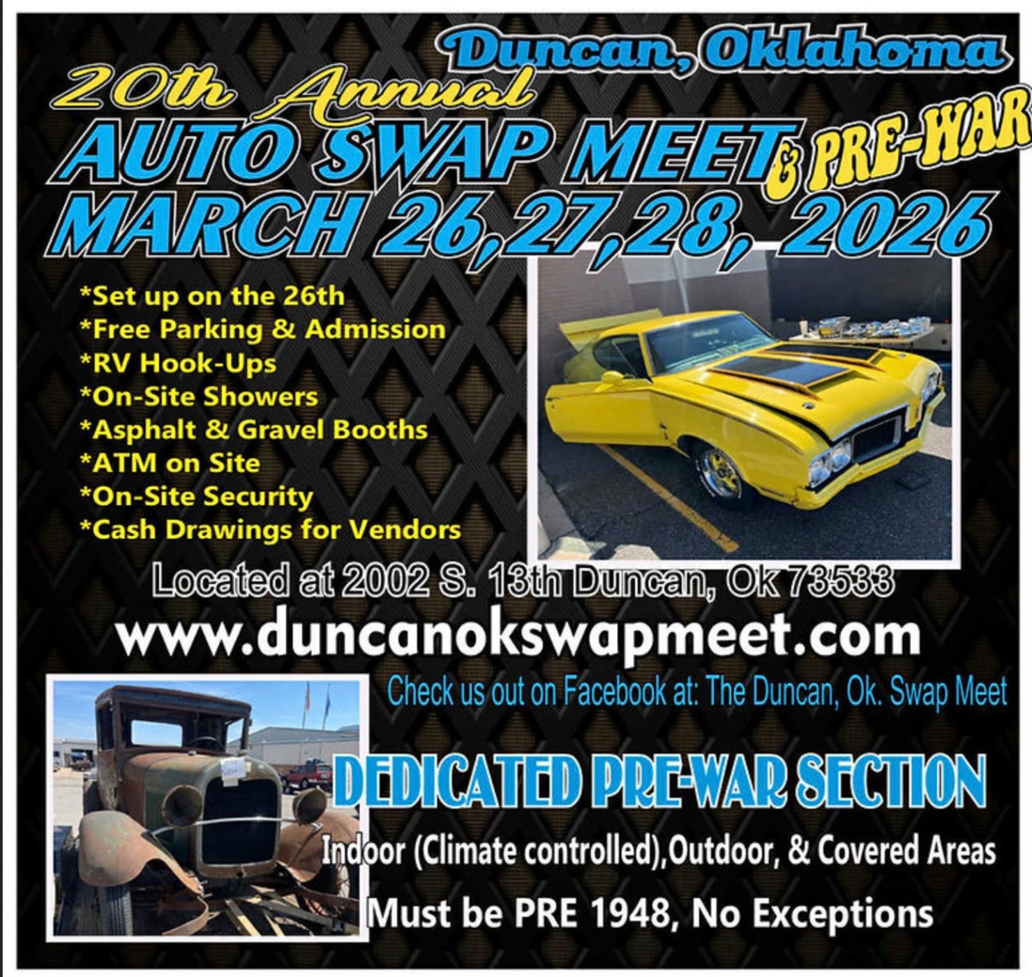 Duncan, OK Swap Meet info here: https://www.duncanokswapmeet.com/
