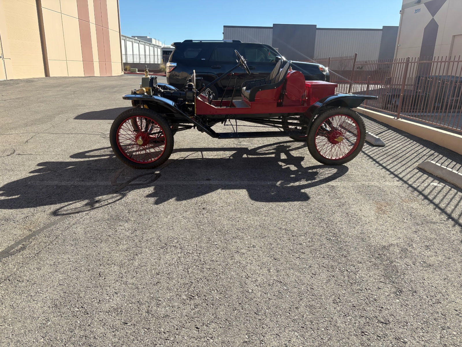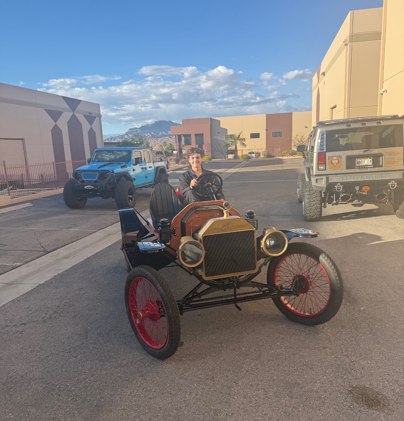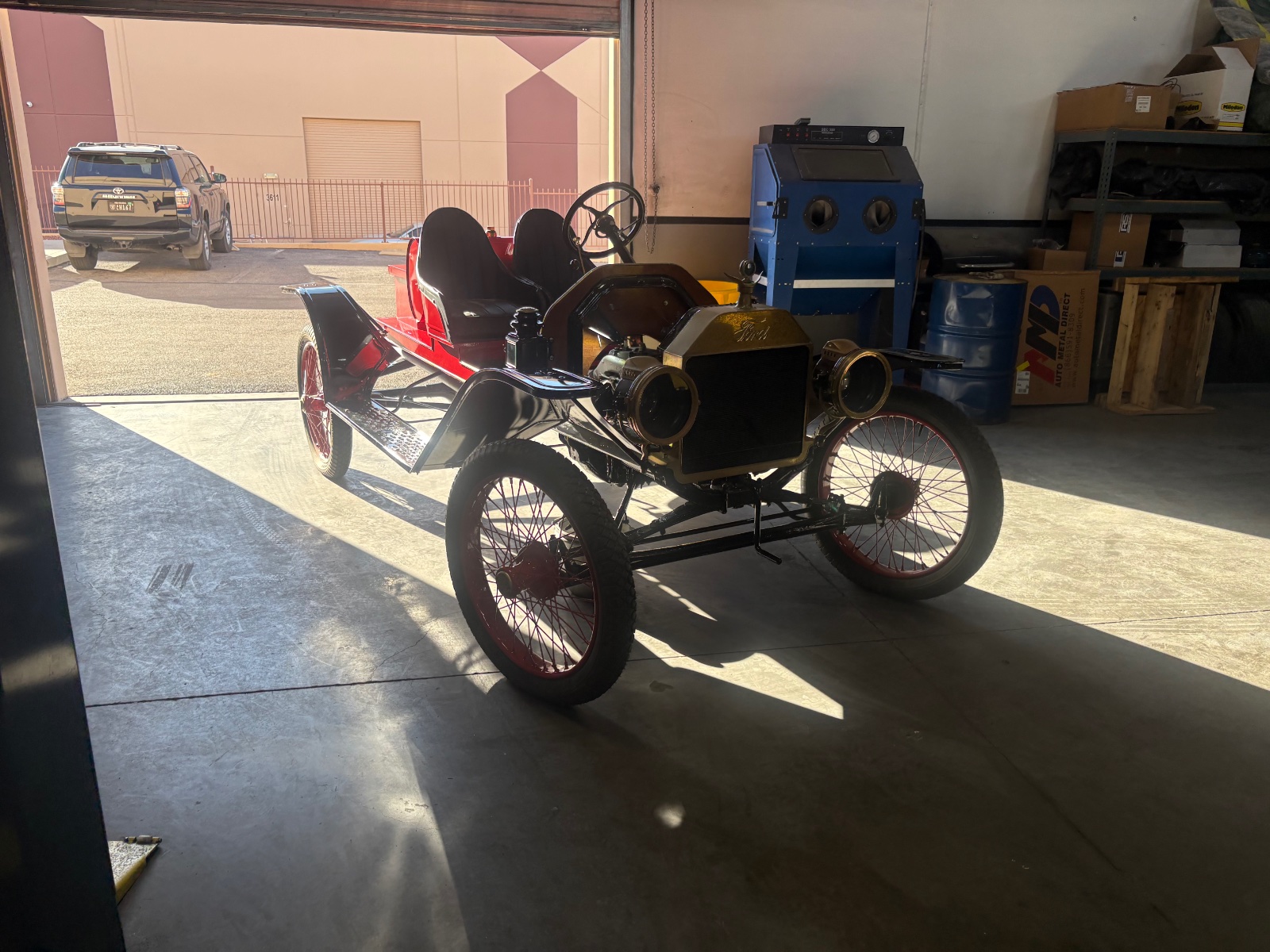 For those who don’t know, I am currently employed at a hot rod shop at the age of 17. I do a lot of different varieties of cars from muscle cars to luxury European to full on custom street rods. Well today I got to work on what I believe is a 1914 speedster. At my shop, no one knows much about T’s so I got to run the show on this one. The car belonged to one of our warehouse neighbor’s husband who unfortunately passed away. Recently she has decided to start getting the cars ready to be sold so I told her the Model T’s I know a lot about. Today she called me over and I got to work getting it to run again. The transmission adjustments were all out of wack and the clutch was all bound up. I adjusted the bands and got it to fire up no problem. I drove it over to the shop where I have my tools and when I got there the carburetor started puking gas everywhere so I pulled it off and took it apart. It was a Kingston L4. Gaskets were shot but I have a bunch of antique carb parts at home so I ran to get those. Came back and put the carb back together after cleaning and reinstalled it. Did some tweaking on the band adjustment then took it out for a few runs. I got the clutch to unstick after some driving then I drove the boss around in it to show him how to drive it. After that I drove the owner’s widow around in it and needless to say, she had a blast. She had the biggest smile on her face. After that, others who have warehouses in the complex came to look at it and I took most of them for a drive. For most it was their first time in a horseless carriage and on top of that in a raw experience in a speedster. It was super awesome to be so young and have the most knowledge of these cars. And also to be able to give people the experience of riding in a T. The car is for sale and I would totally buy it if I was not such a tall guy. I could barely drive it without my knee hitting the column. Needless to say, I had some fun at work today and will post a few photos.