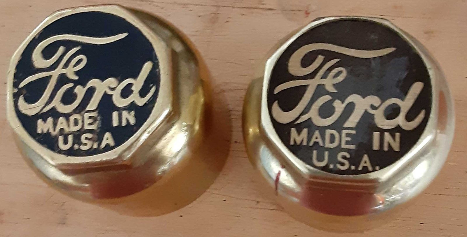 Victor, I an guessing the original hubcap is on the left. It shows some roundness in the pressed Ford script. In contrast, the one on the right is crisp and even all over. I suspect it is not a pressing. It is certainly a great acquisition to complete a car restoration, while you hunt out a nice original, as others have done. Different techniques can/are used to make us the parts we need to keep our T's on the road, but the original ways of making parts makes them just different enough in appearance to make it worthwhile biding time hunting for them.