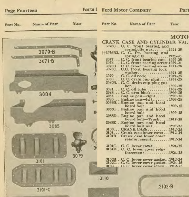 Note dates for Engine Pan in Ford parts manual (December 1925)