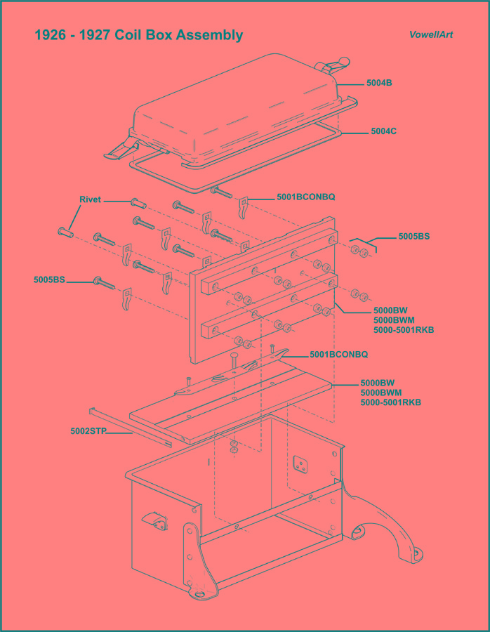 When picking up broken up and mashed up coil boxes for parts I saved them for the contacts and porcelain insulators. Glad I saved the parts. If I remember the porcelain insulators were specific for the earlier cars. They had had a really nice polished finish while the later ones finish was not as polished. Remember reading about it some where.