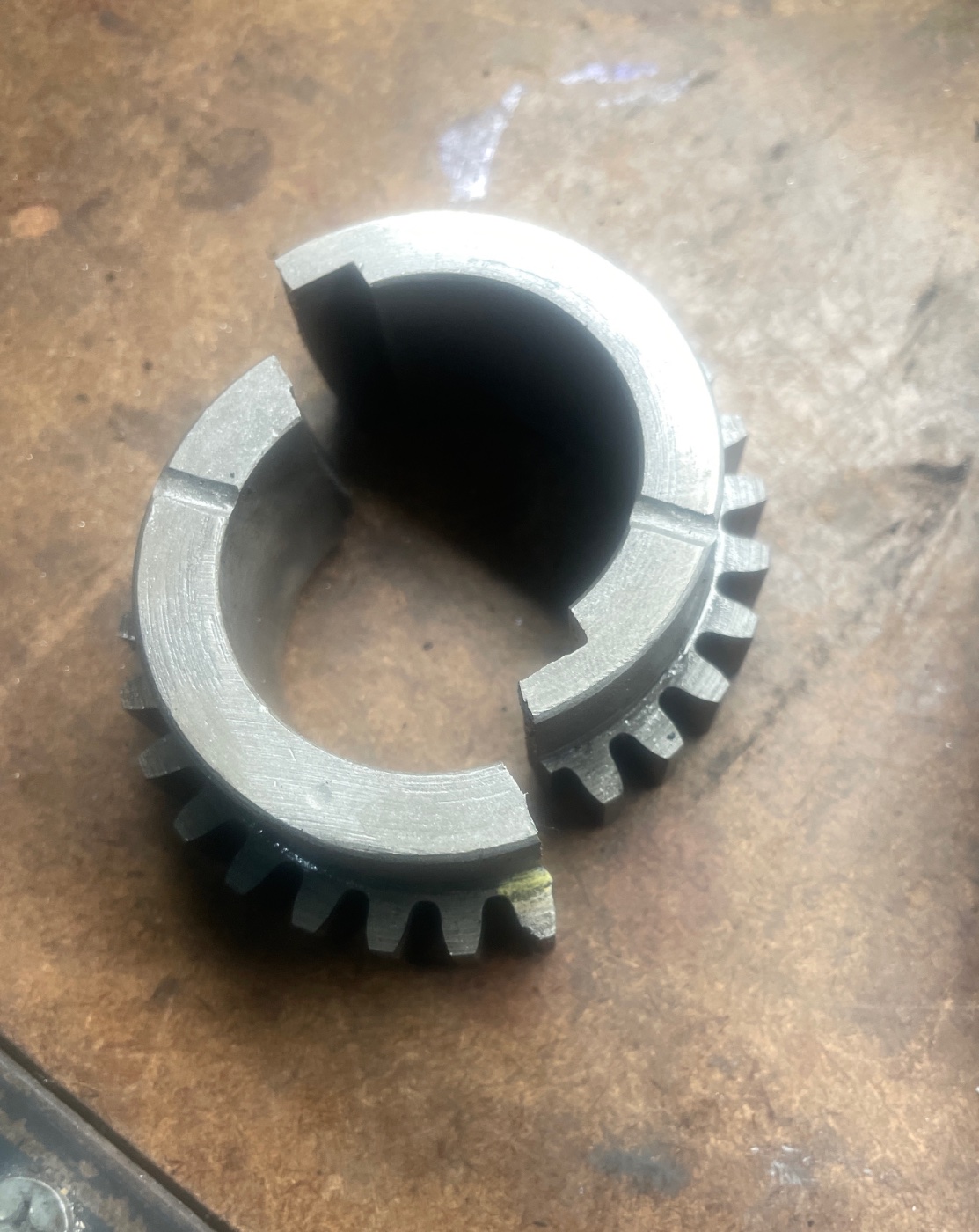 At least the flywheel recess kept the two pieces together, not sure how long it ran before both sides let go, perhaps the gear ran for a while with one side cracked?