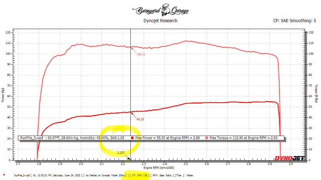 Chassis dynos have a correction factor to add in the HP lost between the flywheel and ground. Some may have this number dialed in, but suspect with our T’s it’s just a WAG. This example is set to 8%