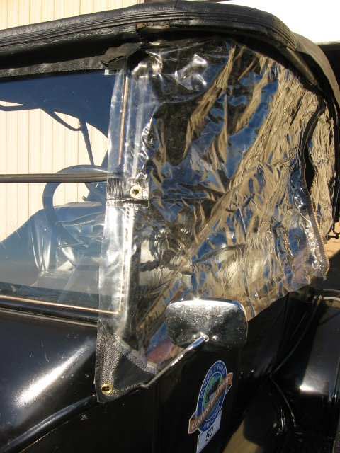 Mine came with no top also. We purchased some well used bows, bought the wood for them, and installed the top ourselves. Thanks Teresa! We then bought some clear vinyl at WalMart, along with some black vinyl fabric, and made the side curtains. I don't like the lack of visibility with the stock curtains, so we made them clear vinyl except for the perimeter, which we put fasteners on. We bought Murphy fasteners from Northwest Tarp and Canvas in Bellingham, Washington. We made each side as a single piece, with a double sided large zipper for entry through the doors. Use a large strong paper, or a cheap tablecloth to make a pattern and make sure it fits before cutting out the heavy vinyl and trimming with the black fabric. Teresa says to use tape to hold the pieces together rather than pins before you sew it.We don't use the curtains often but they are wonderful when they are needed. We have even been able to put them on from inside the car and avoid getting wet.