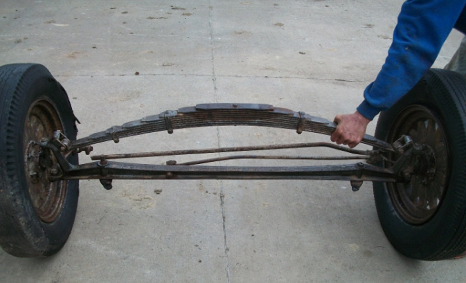 Preston,not sure about the years on the axle, but the spring and perches are aftermarket. I've seen a lot of wheels like those at swap meets, but don't have any idea what they were for. Obviously, the T hubs have been swapped in. Dave