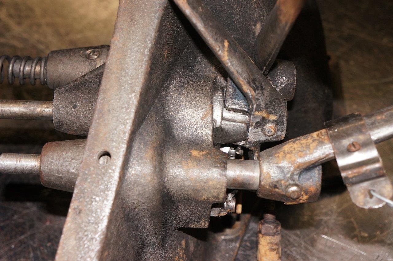 It is funny to me to look at this, with the brake-lamp switch clip on the long angled pedal instead of the short nearly straight pedal, realizing the length of the pedals switched because the drum positions remained the same.