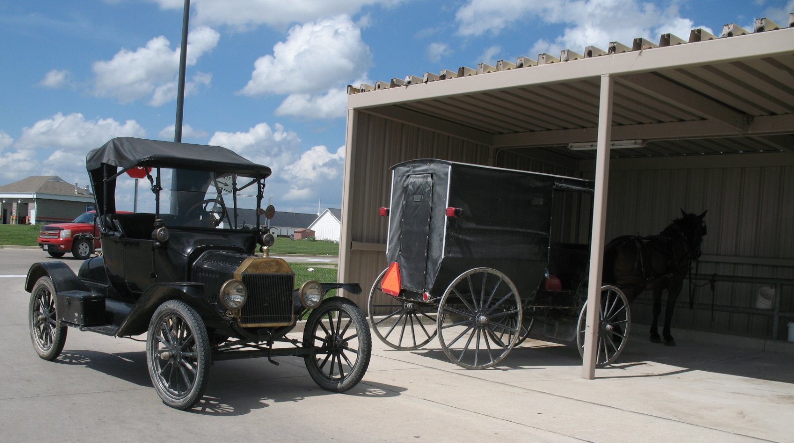 I sometimes pull up and take the rope off the side of my 26 pickup and tie up to the rack. Makes them laugh every time.