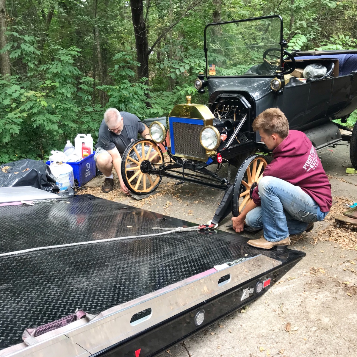 They removed the spark plugs, put oil in cylinders and put the Model T transmission in high.
