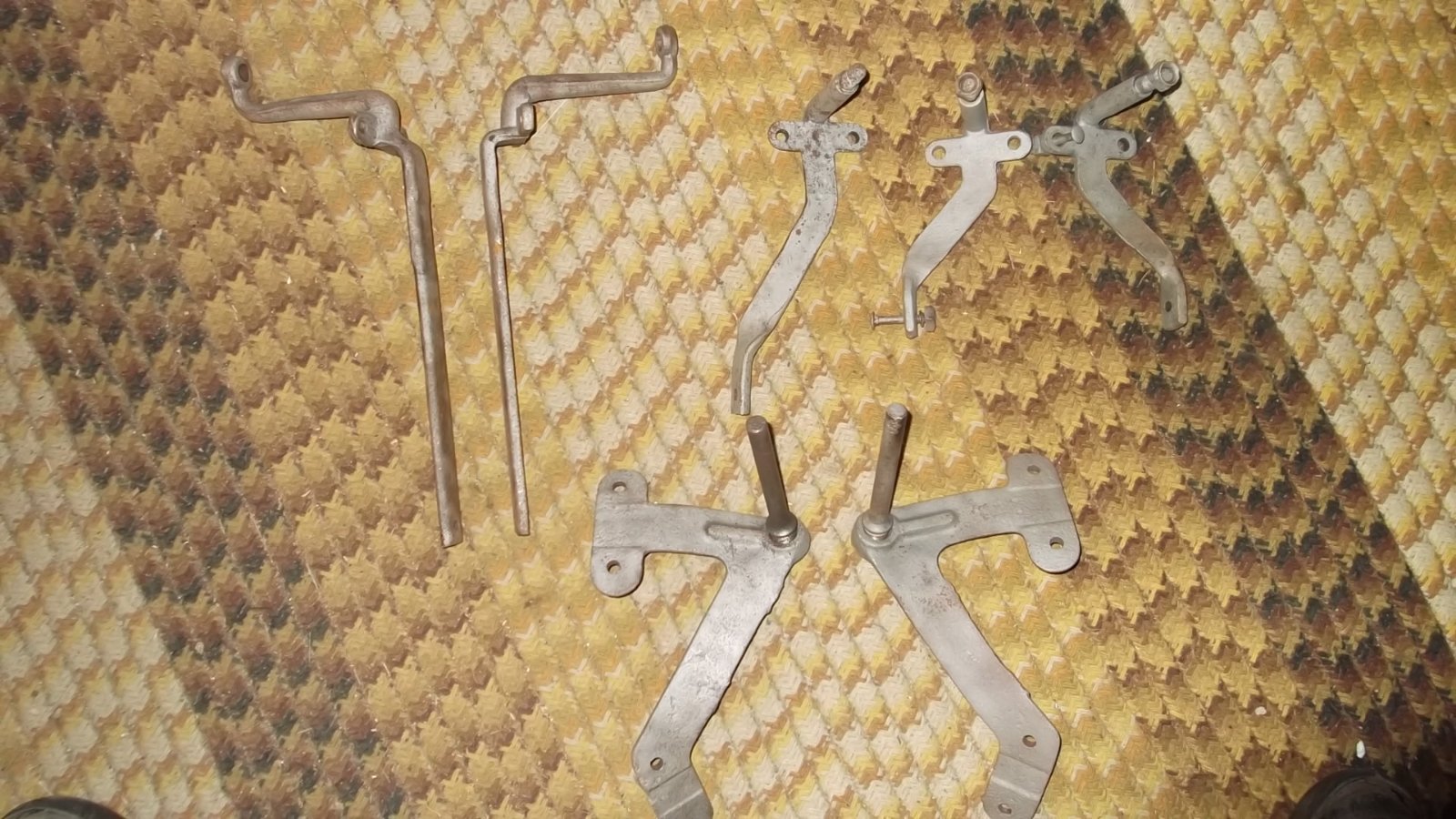 Here are some irons I have collected. The top left pair would be front seat 2 man top. The top row middle single and pair on right; one man top runabout or touring rear mount. The bottom two are runabout, I just happen to have them in the same box. The 21 back rear mount for the two man top would have looked a little like the pair on top row left, only would have had a shank with threaded end. The 21 back iron that held the "L" iron for the top rest would have had a socket to receive the "L" iron, it too would have a long leg coming down as I recall, but do not have a sample.