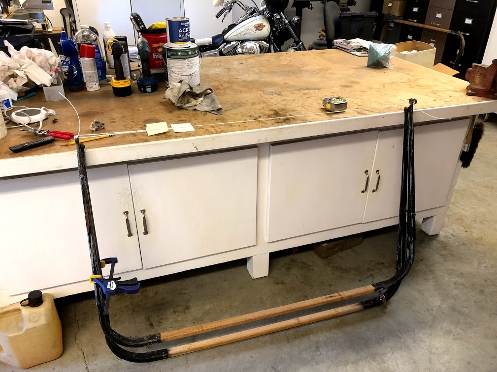 So far I've been the only guy on recent tours with no top on my 1920 touring. But now I see there's a whole club of topless Ts that have been running around. I recently posted some questions regarding the installation of my top bows onto the car that some of you may have read. First, all four top brackets on the body needed to be re-positioned requiring the upholstery to be opened up. Then the set of bows I bought 45 years ago didn't fit right. I think that from just laying around for all that time the corners opened and relaxed to differing degrees which created a lot of pressure when trying to squeeze them on the car. Both top bows and body bracket issues were solved here on the forum. I soaked the corners of each bow for most of a day and then positioning the bows in my vise where the two rivets are, I carefully bent them back into shape, tied them up and let them dry. No cracking of the corner pieces which had concerned me. With new wood installed on the top it's just sand and paint and I'll be ready for the top in the next month or two.