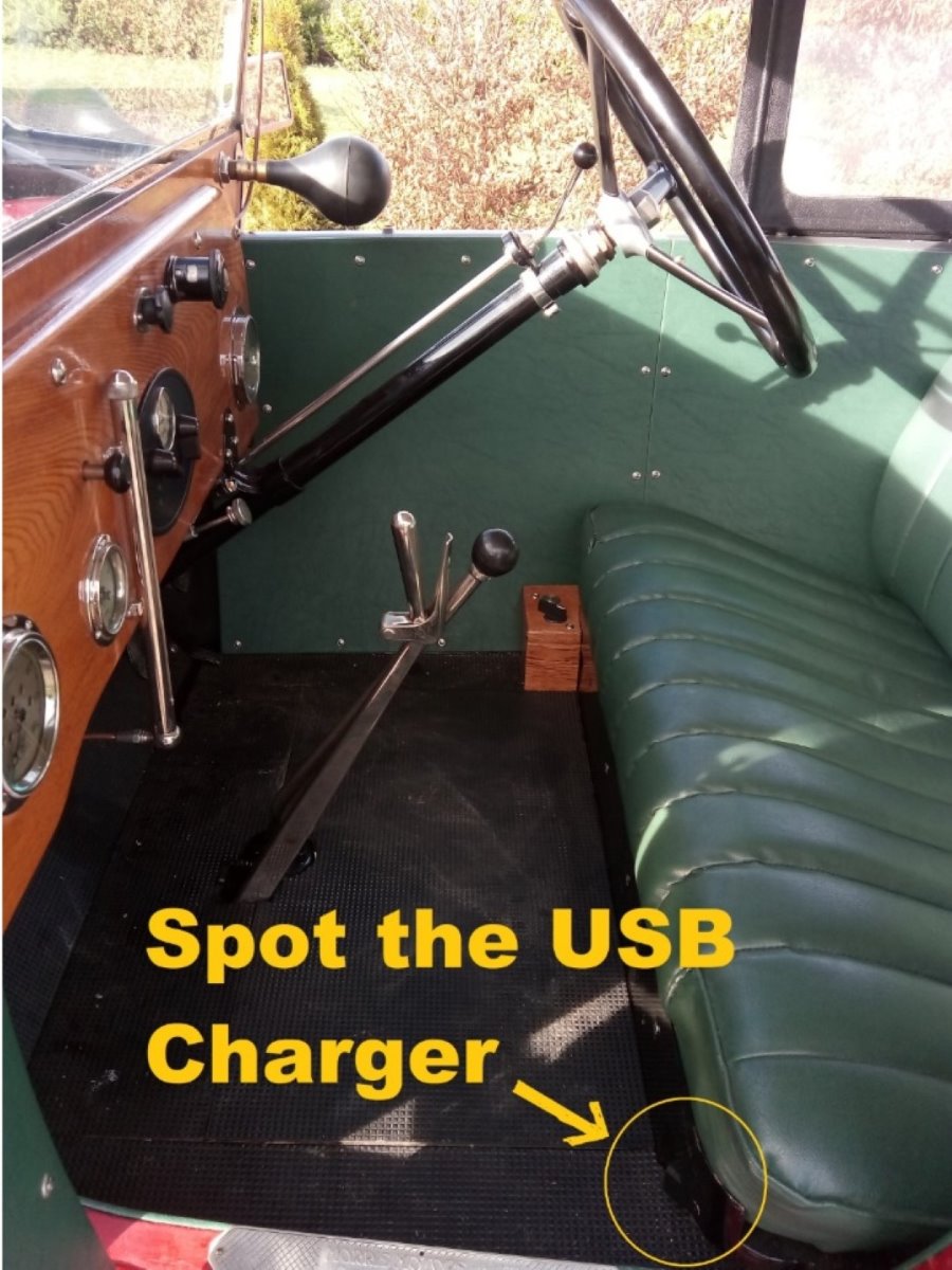 The trouble I have is the batteries going flat. They never seem to last through the trip. My solution is the installation of a USB charger in my 1924 Morris Cowley to provide the needed power. Having confirmed it works I am installing the same setup in my T Roadster and in my TT.
