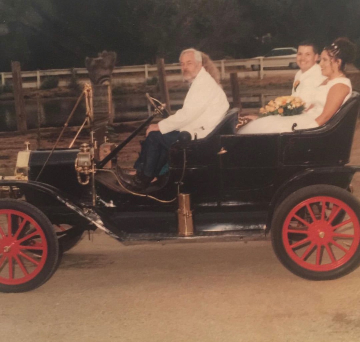 Phil driving me on my wedding day 1998