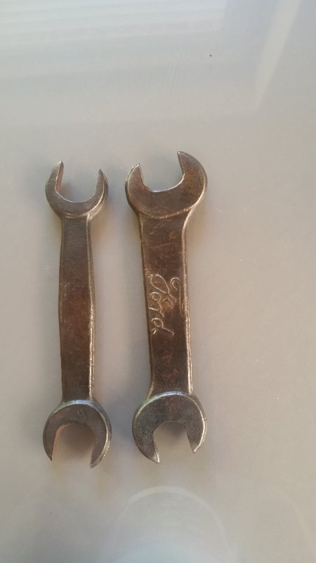 bought these two spanners in a junk emporium a day or two ago. Because of the Ford script, the chunky one was $10. The other has had the Ford ground off for some reason, so it was only $2.