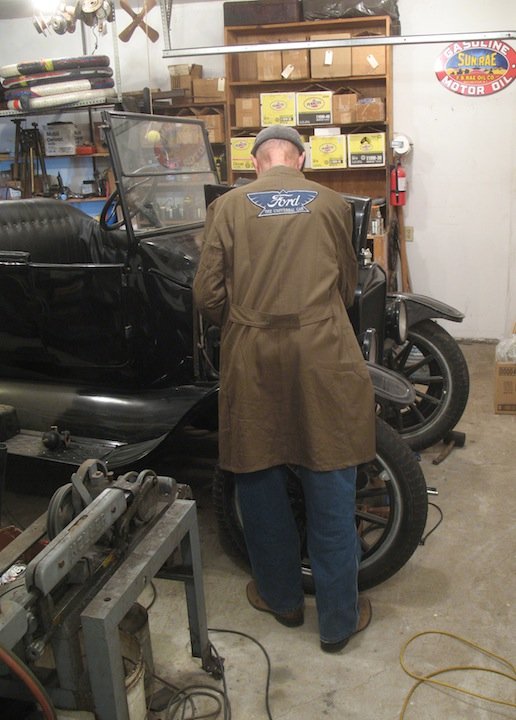 There is a difference between a duster (floor length) and a shop coat (knee length). They were universally buff or light tan (dust colored) for obvious reasons, and were in general use thirty years or more before the advent of the infernal gas buggy. I think efforts at period dress really complement the hobby. Kudos to all who go out of their way to "match" their Model Ts !