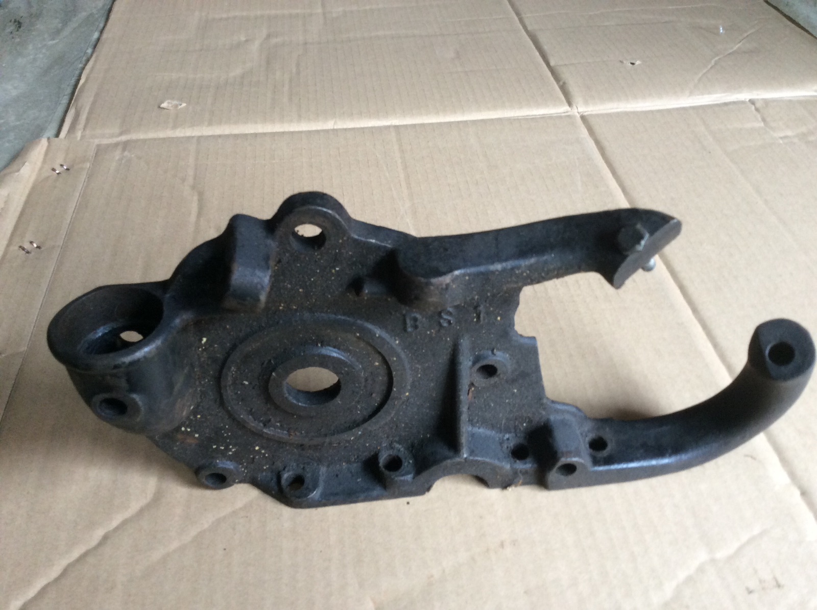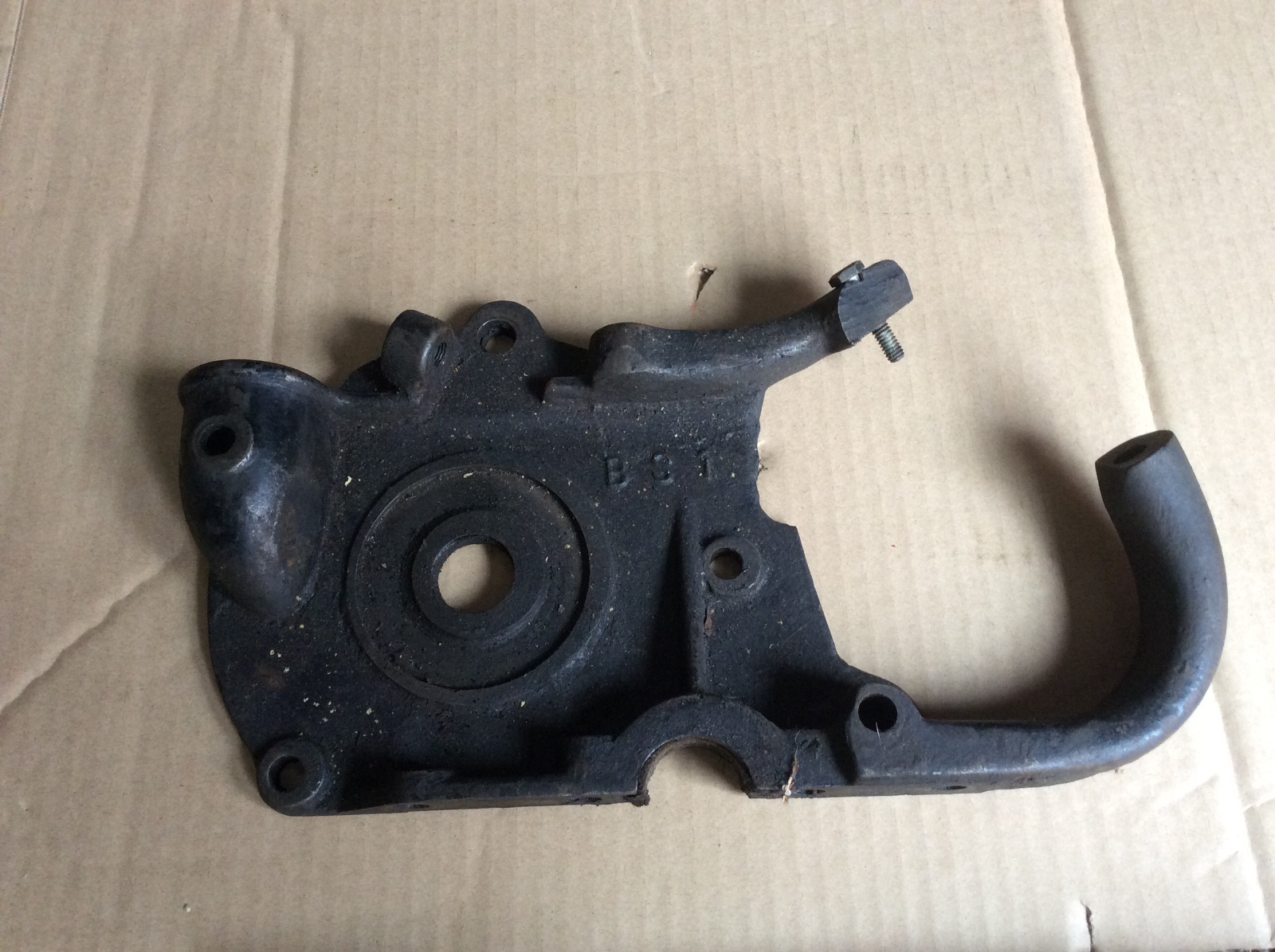 Any ideas ? Very well made casting . We put several of our local peanut brains together and think it may be part of a “in the seat” pull start mechanism. The curved part at the top appears to have been sawed off. The sketch with red is my guess, to mount a pulley . Any help would be great!
