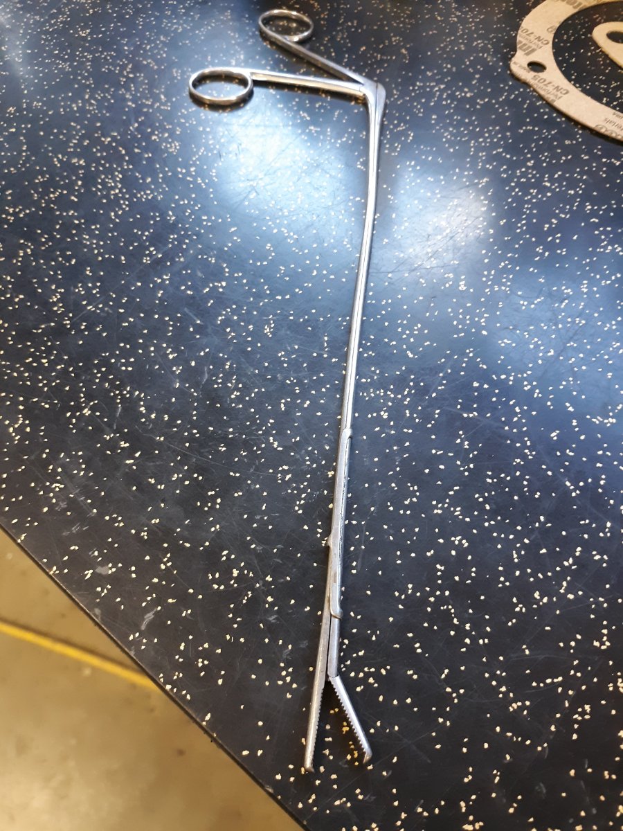 Then, with the magnetic wand holding the spring in the position where it could be seen from above, I reached down from above with a two-pronged wand, gripped the spring, and pulled it out from above.