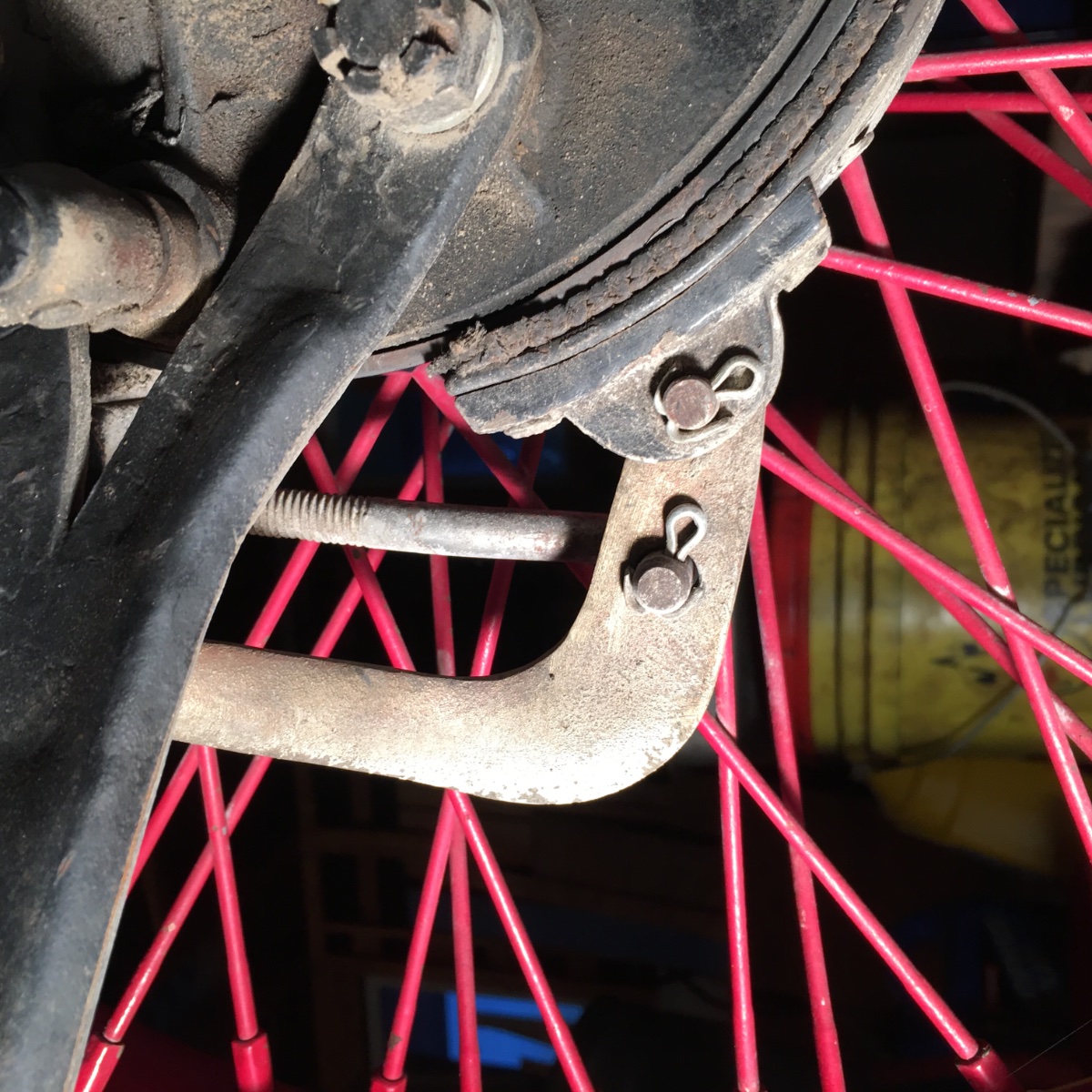 I just got a set of original Bennett small drum brakes. Problem is the levers were both cut off. What I am looking for is the distance from the mounting point on the shoe to the point where the cable/rod pull rod mounts. There is enough left that I can get angles/bends, so what I need is just point to point in a straight line.