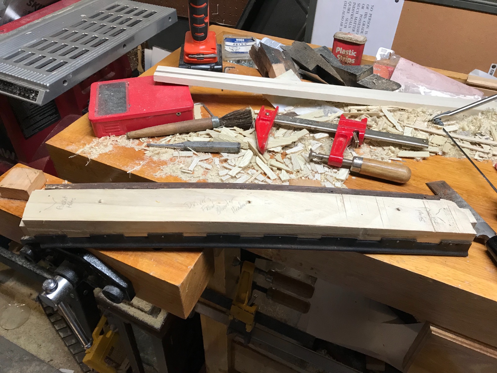 Replicated the front quarter window headers for both passenger and driver sides. Pocket holes and window channel attachment holes marked.