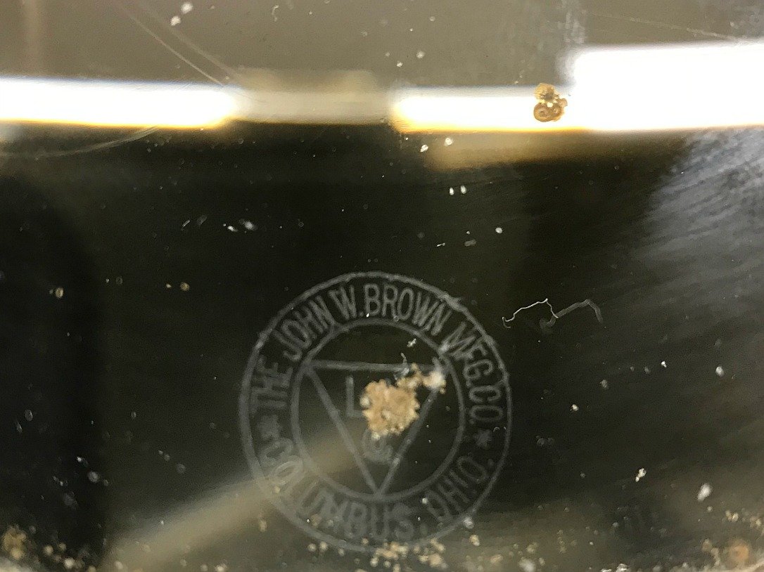 While repairing my 1913 Ford's Jno. Brown model 19 headlights, I found this manufacture's logo etched into the reflector glass before it was silvered. Neat! The original holding wedges are pot metal and badly fractured. I machined a 6.5" appropriately shaped ring out of a convenient sized chunk of bronze on the lathe, cut out the pieces, drilled, & tapped them. Good as new!