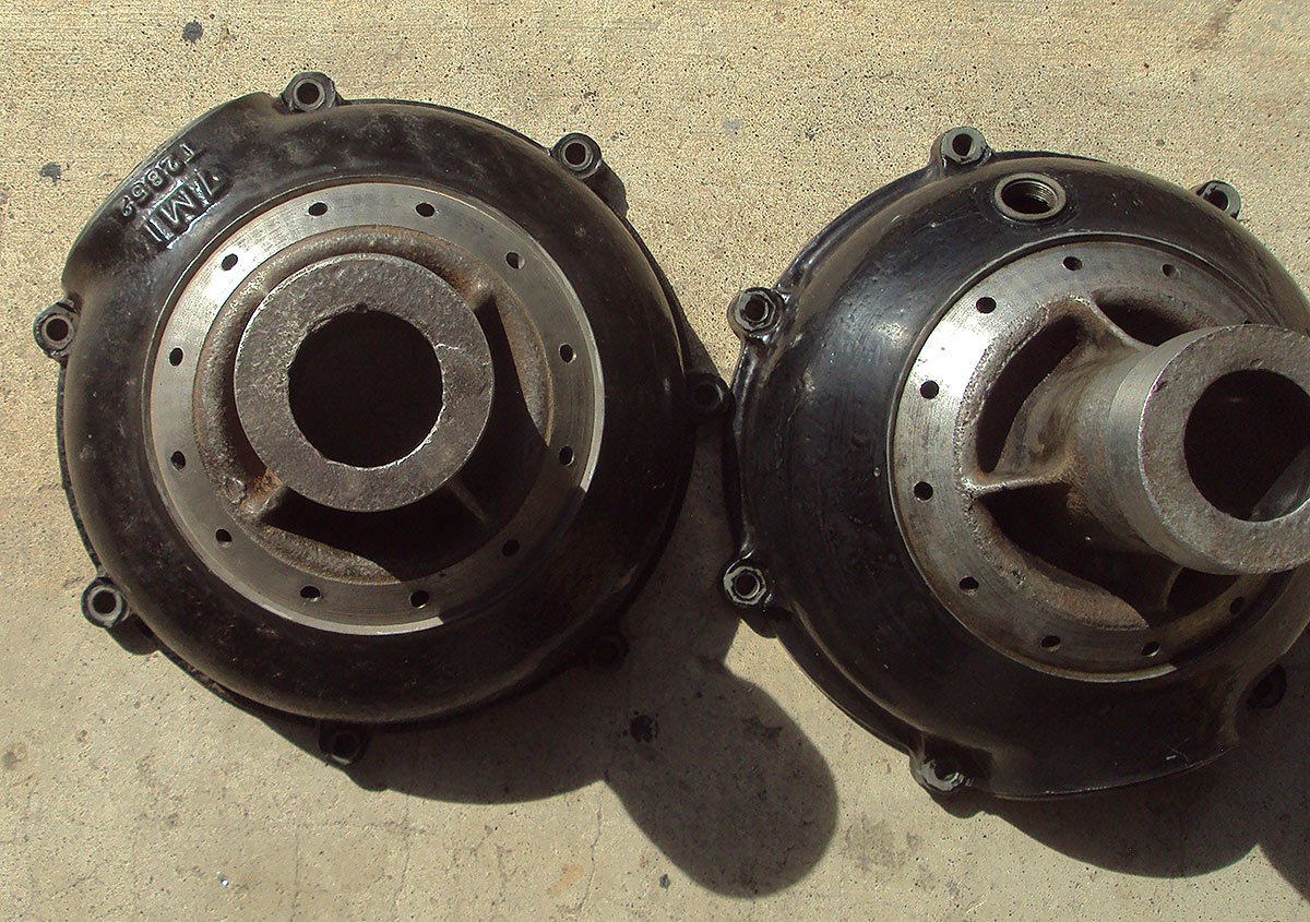 Hearing of some lubricants attacking the bronze thrust washers I had worried that the Amsoil might be harmful. After rinsing the inside and disassembling the axle I found very little wear and no effect on the bronze. I’m confident this is a good choice of lubricant for me. I spun the housing sections on a rotating brake drum machine which makes cleaning thorough and quick. I noticed the quality control on the one housing was not as expected. The hole was offset but is not crucial to operation.