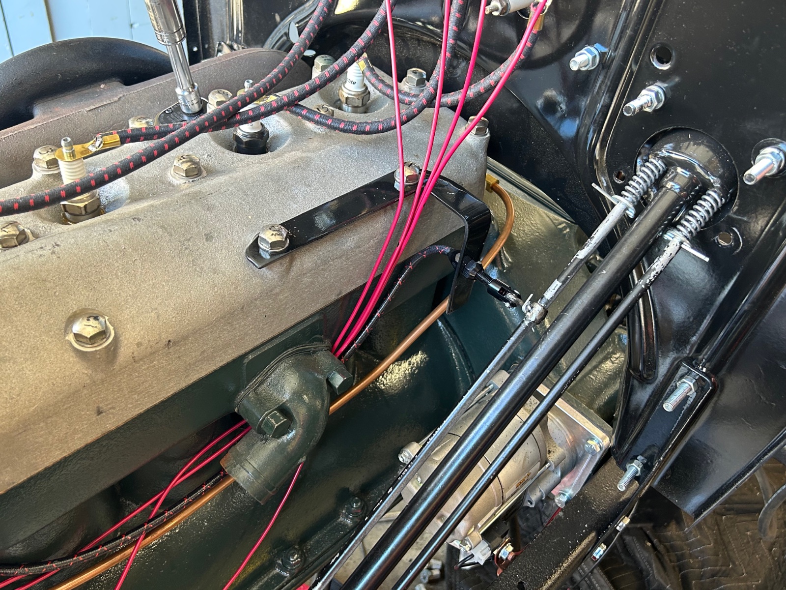 This one took some brain power. Finally figured out how to run the throttle control with the Model A carb without a hole through the block since it’s a late 27. Lokar cable and some flat bar. Remember kids, a grinder and paint makes the welder I ain’t!