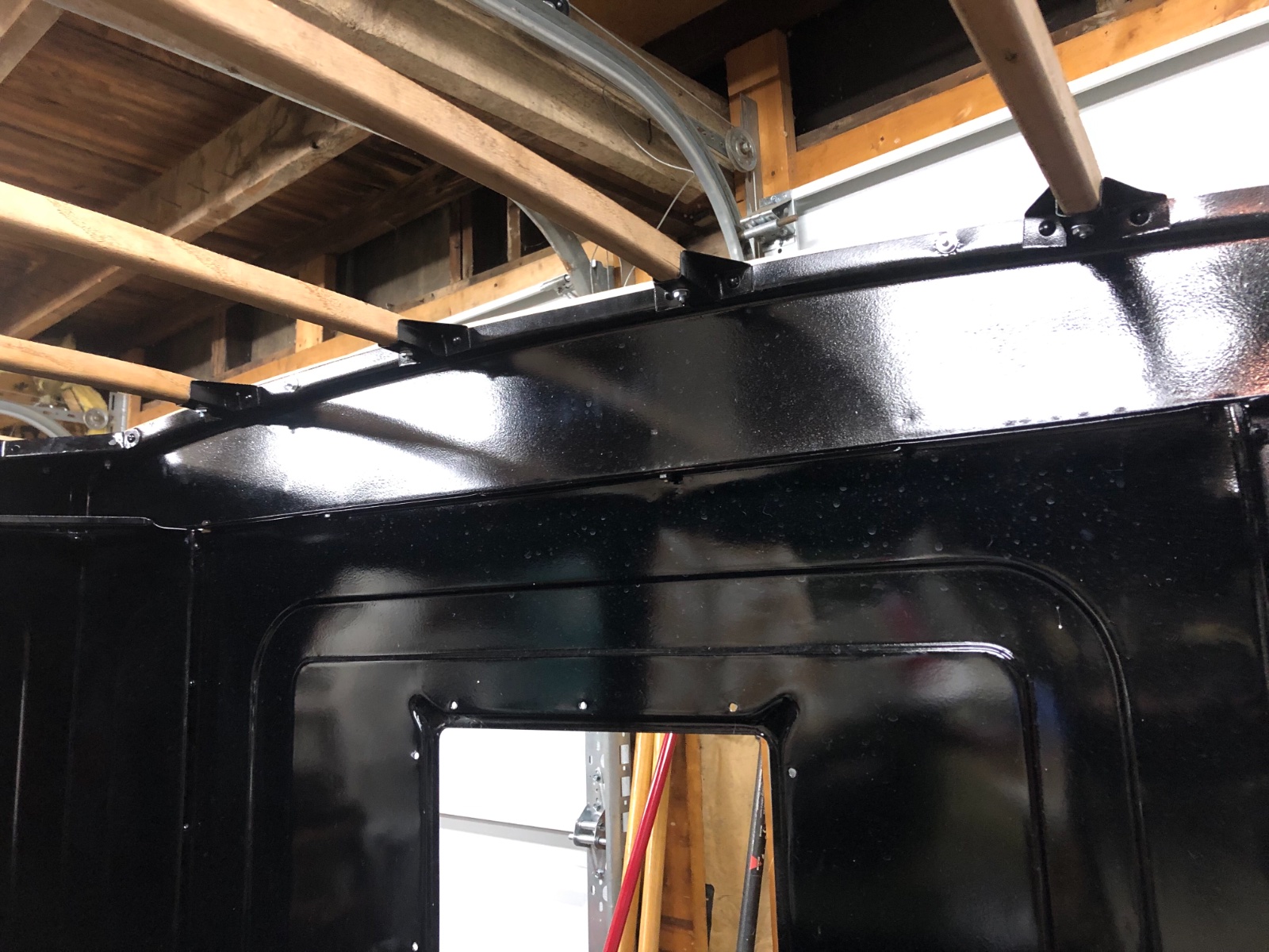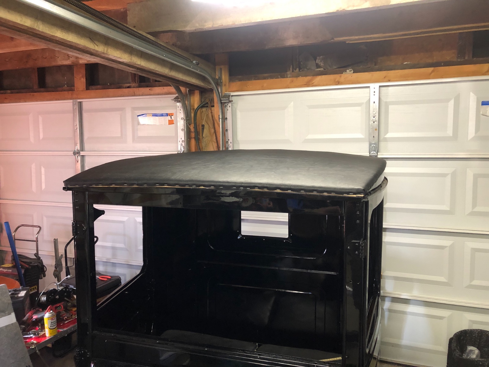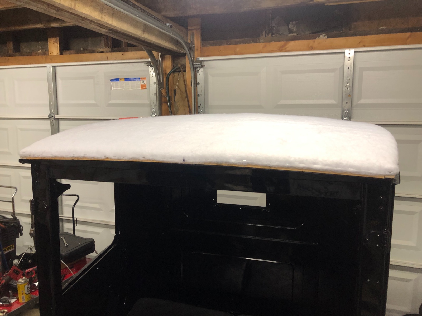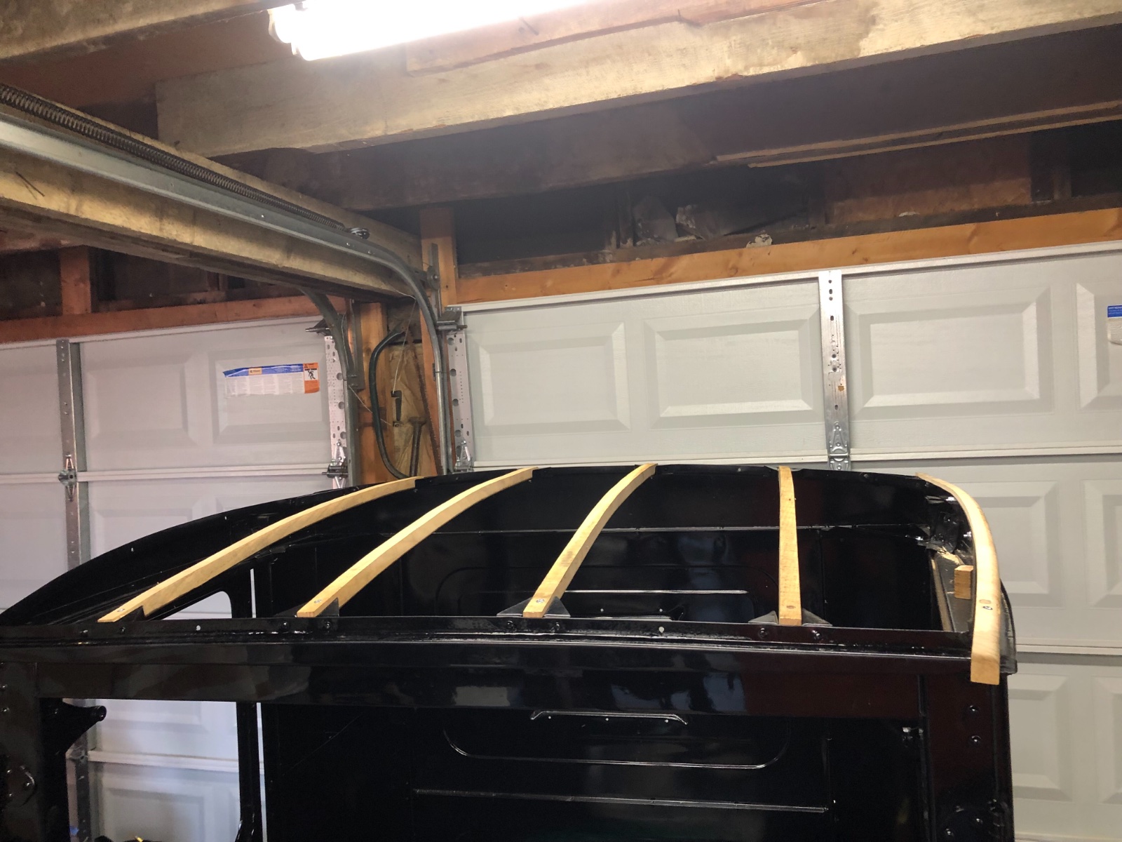 I have seen very little to no complete information/ instructions or pictures for that matter posted about installing the top wood and top for a 25-27 CLosed Cab TT Truck. So here we go. I’ve been working on mine for the last few weeks but made some major head way last night with the top cover. No the base material isn’t the stock muslin material but it’s just as strong and it’s my truck and I didn’t want to look up at black all the time! I’ll post what I have then keep updating on this thread as the project progresses. Some pictures will be sideways but that’s what I’ve got. Any bright enlightenments are welcome.