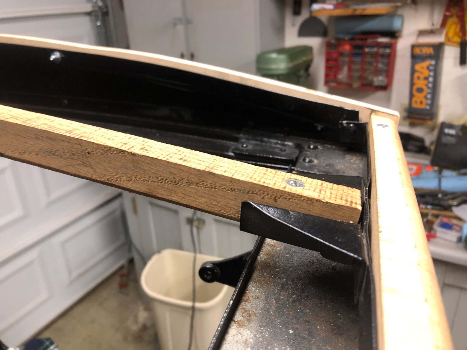 The edges of this layer were more poofy than the last after trimming but with little more trimming and the top layer it will be fine. Here’s the view from the inside too. It’s just from it laying on top. It turned out much straighter won’t I was able to put some tension on it and a few staples. That’s all for now. The hidem welt is on order and we still need to fit the top layer. Maybe it’ll be done before the weekend. Maybe not.