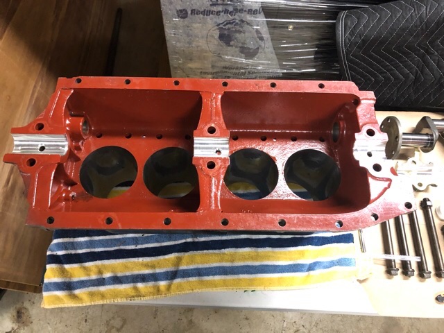 Made a little bit of engine progress this week. I’ll probably have the hogshead rebuilt by this weekend. Cam bushing line reamed and cam installed with lifters and freshly ground big head valves.