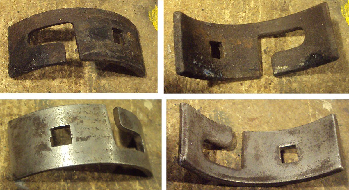 I wanted to reassemble this one that had the font forcibly removed without lining the 4 tabs up. The hole was no longer round. I cut some maple to fit the curve of the base for the font. Then by using the curved latch plate as a form I could hammer the lip back into shape.