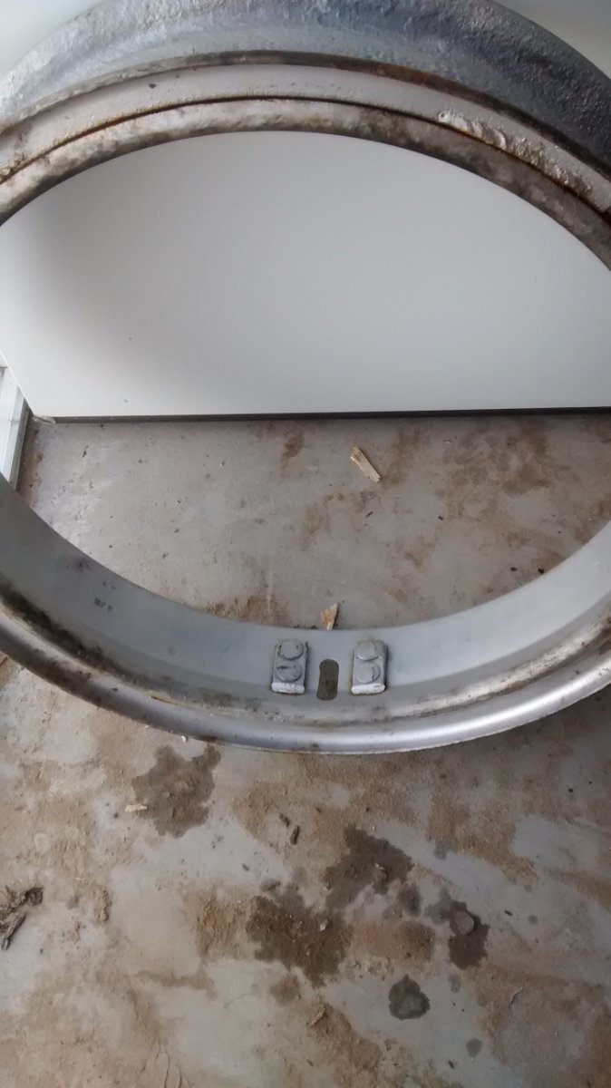 The boss around your old valve stem sat in a keeper in your felloe to prevent the rim from spinning on it. Your new rims don't appear to be TT but should work okay as long as everything fits up as stock. You should weld in a similar boss on the new rims to act in the same manner as the originals.