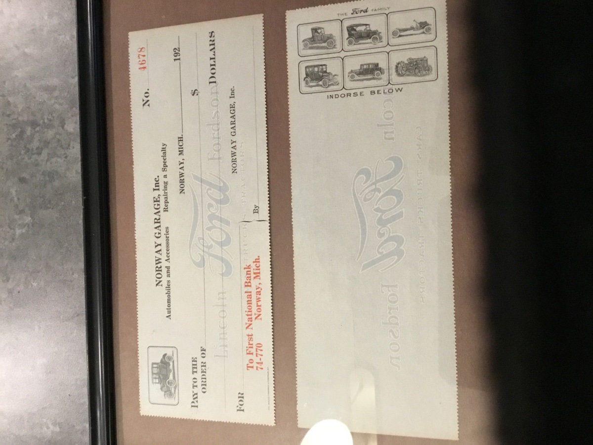 One thought on framing an item that has printing on both sides would be to use double glass. By that I mean is to build a frame with glass on both sides that way you can hang up the check and when it becomes a point of discussion you just have to lift it off the wall and show both sides without removing it from the frame.
