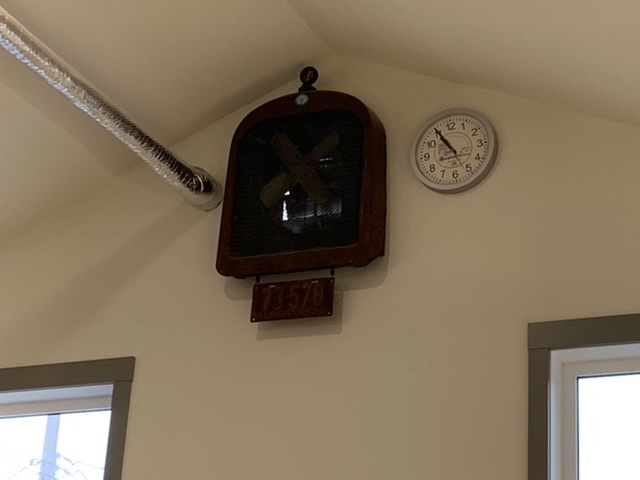Here are the final (so far) T parts repurposed for the shed... running board shelves over the workbench and a Model T rad fan behind the Dodge rad shell which conceals the exhaust fan. When the exhaust fan is on, the airflow causes the T fan to rotate slowly.