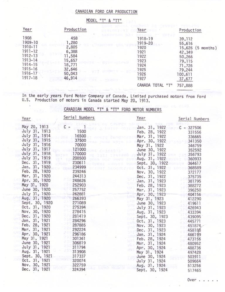 Here is a chart that was placed on the Forum a few years ago with Canadian engine number sequence.