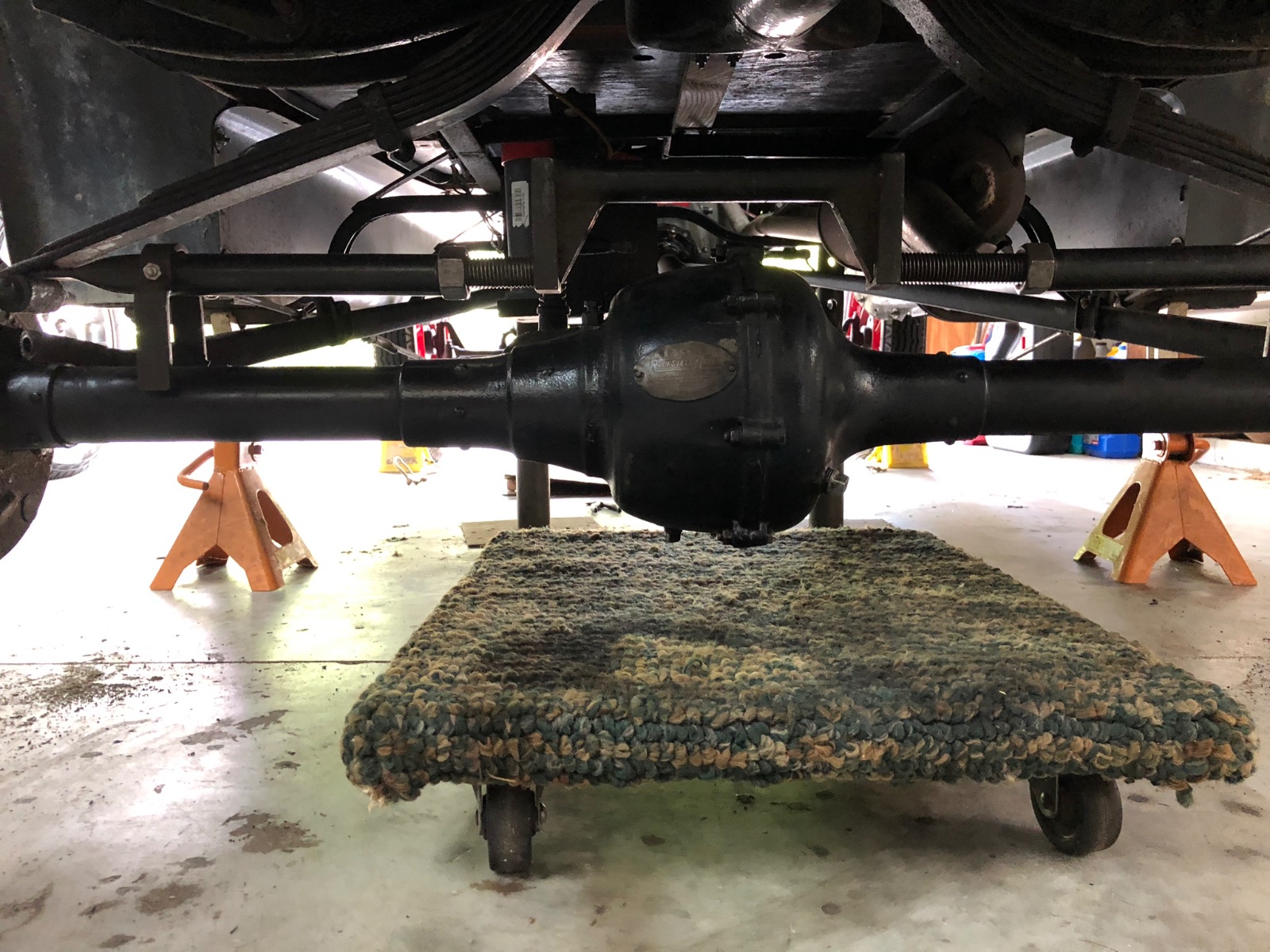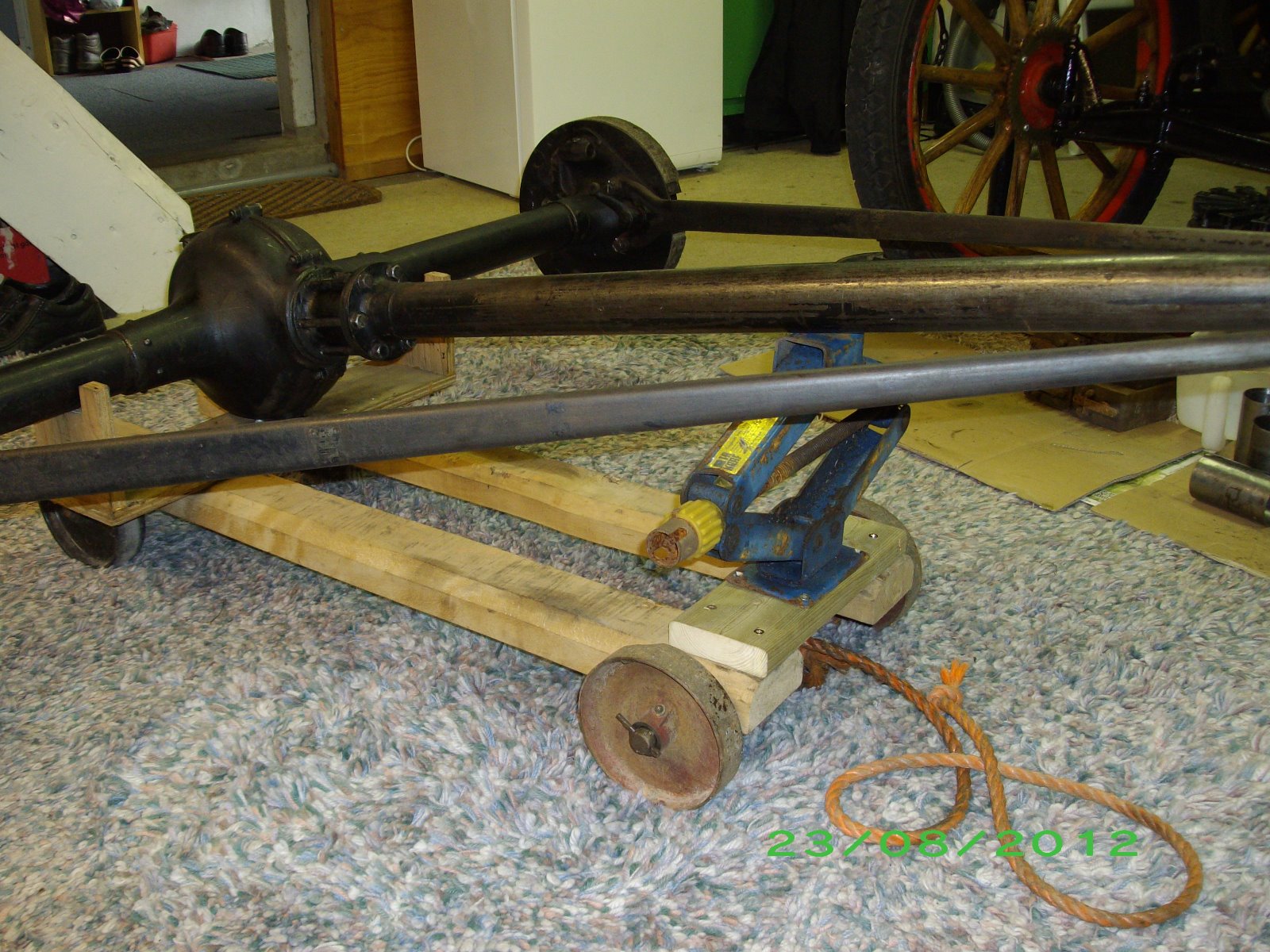 When I removed the rear axle in Betsy to install her Ruckstell, I made a cross bar that spanned the rear frame rails and supported the car with it. If you decide to make a cross bar, make it beefier than mine, mine worked OK but was a bit saggy.