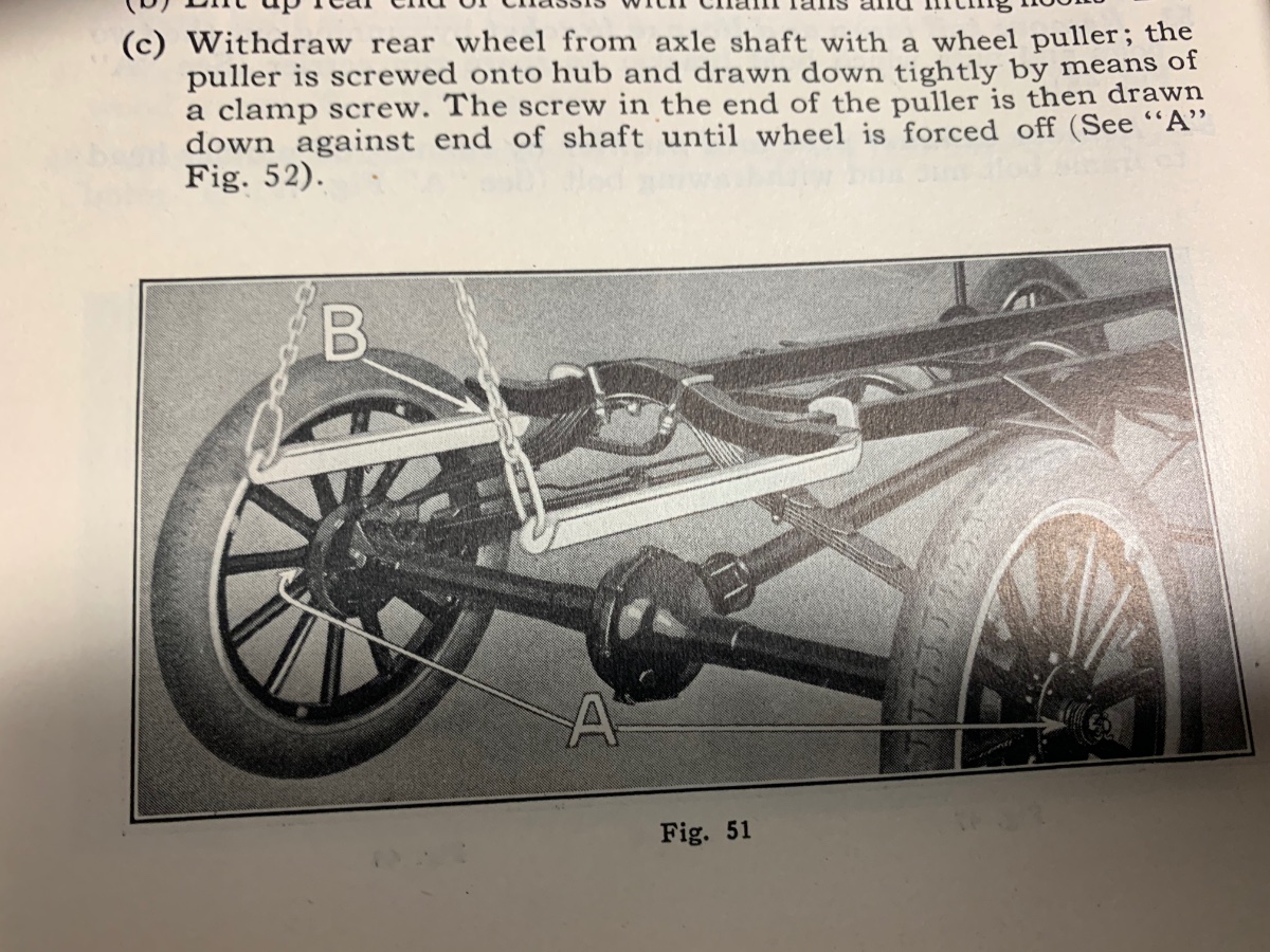 Personally, I prefer the overhead approach to rear axle removal. I built an overhead beam out of doubled 2x6s for my vintage chain fall. It could also serve for pulling the engine. Timber is handy and easy to make into needed garage items. The axle support on the floor jack is a 4x4 with appropriate additions.