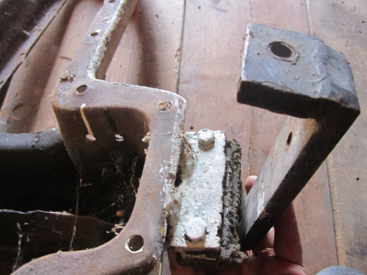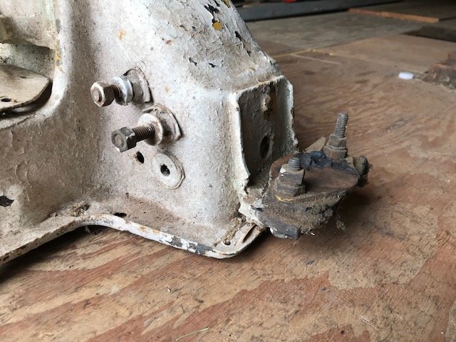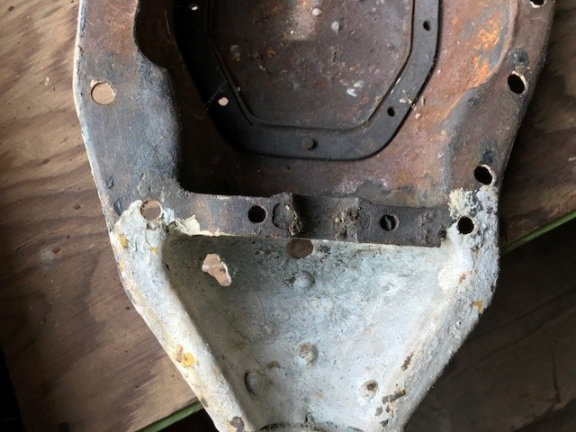Here's some more pictures. This will get the "straight pan" fanatics squirming. Again the engine was mounted to an aluminum crankcase running an automatic transmission with a Model B crank shaft, so I'm guessing they weren't too concerned with pan misalignment. It appears that the arm may have been a single piece with the rubber bonded to the now two loose pieces of the bracket. Not sure where I'm going with this yet. Summer of 2020 project. Enjoy.
