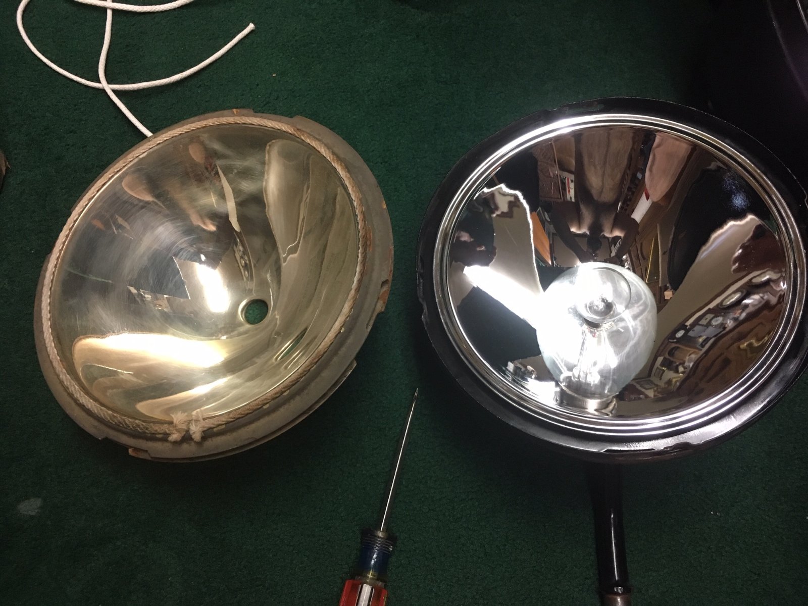 Buddy...if you’d like to sell the used one on the left, I’d be interested in it.BuddyTheRoadster wrote: ↑Thu Jan 02, 2020 3:03 amAn object lesson. The left reflector is an original silvered one in tolerable shape. The right reflector is one of the aluminum coated ones from Lang's. It's a world of difference, and I'll know in a few days how much difference it'll make. And of course, check that you have good grounds.