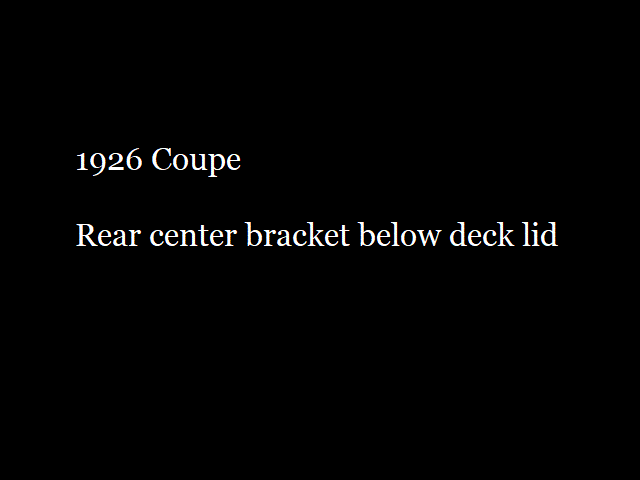 There is a bracket that screws into the wood beneath each side window and goes down to the top of the seat back bracket on early 1926-7 coupes. A later revision goes straight down, directly to the sub-frame rail.