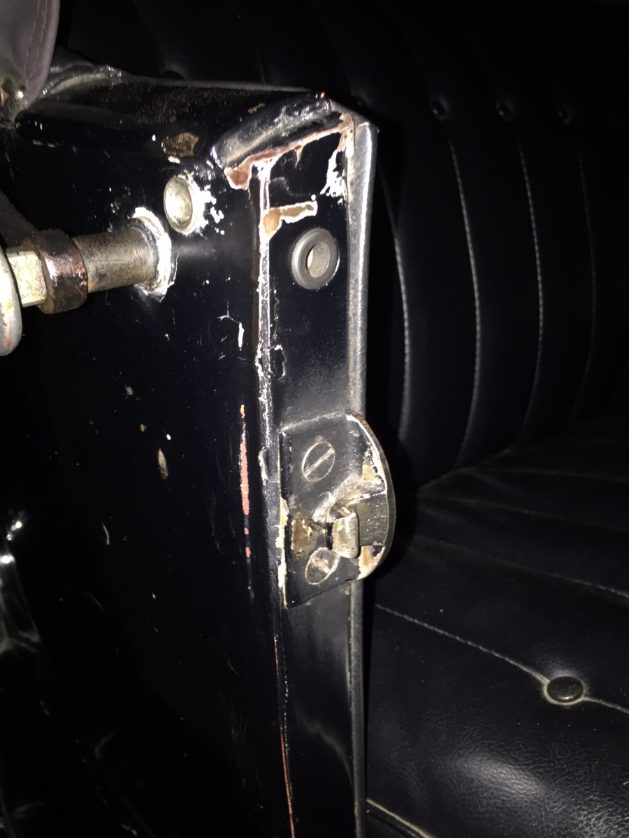 Thanks a bunch guys! I’ll attach the seat bracket to my replacement seat pan for an additional attachment point and to stiffen it up. I’ll also cobble up some wood pieces to stiffen the jamb and give me a tack board. The pictures also show me that the bracket has the same flat head screws holding that seat bracket to the jamb low down by the sill plate.