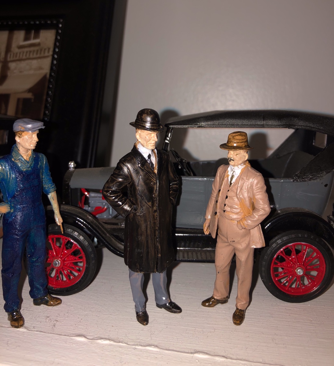 On the shelf now, the mechanic looking over the '27 and Henry proud of his works.