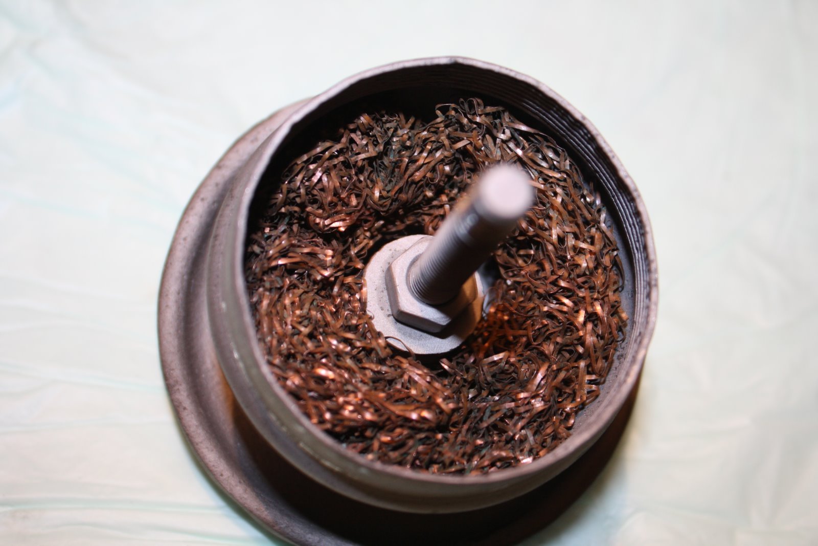 It is built with scraps from around the house and an old chevy hubcap (possibly a 490 ??)